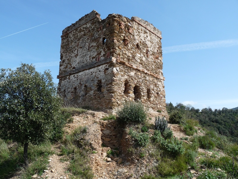 Des de la Torre prenem un camí al sud que primer baixa una mica i després, en forta pujada, ens porta fins a la pista de les Llicorelles. Girem a la dreta i la seguim fins a una cruïlla on trobem el GR 97-3. Agafem la pista de l’esquerra tot seguint les marques de GR fins al coll Mercader (232m, 4,4 km). És una cruïlla de quatre pistes. Cal prendre la de l’esquerra, en baixada durant 15 metres per agafar tot seguit una altra pista (cadena) a la dreta, ara en pujada. Continuem per la pista fins a trobar un corriol (pal indicador, alt. 353m) a mà dreta que ens durà fins el cim del Castell de Sant Miquel.(435m).
