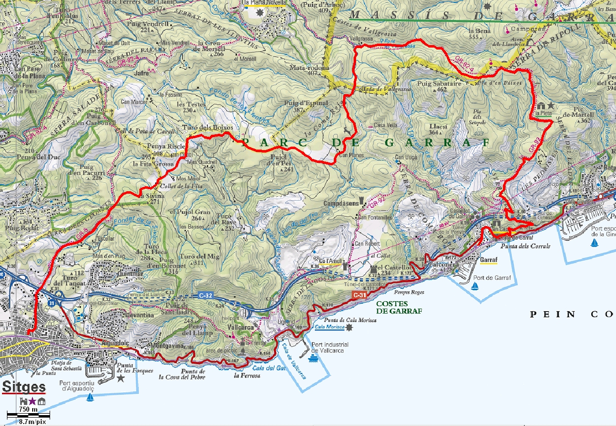 - Un cop a Sitges podem seguir l’itinerari Ruta ST15 Sitges – Vilanova i la Geltrú 8,7km 8,6km