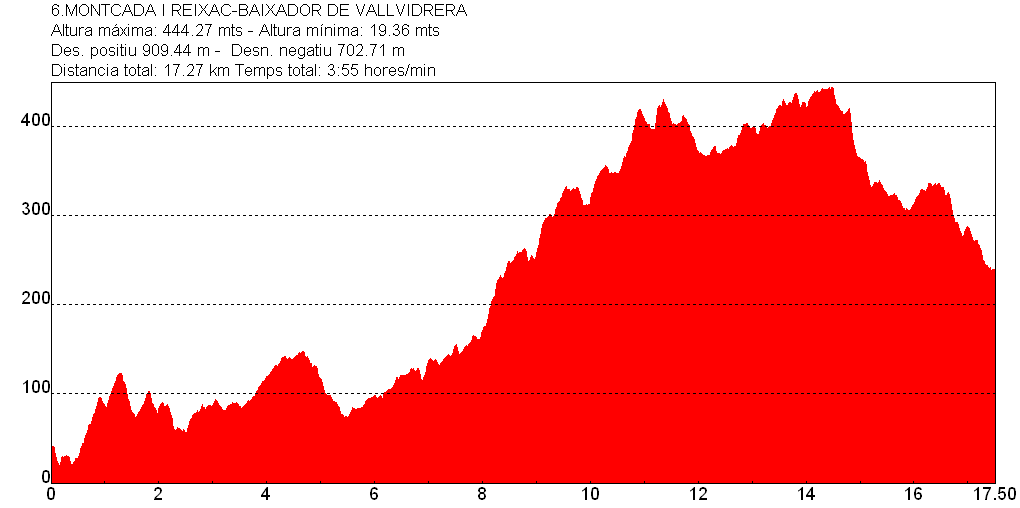- Distància/durada: 17,3 km / 4h30 (sense aturades)