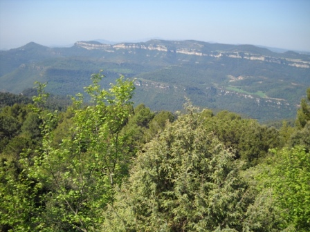 El camí és molt maco, amb excel·lents vistes del Tagamanent. A la collada de Mojó (947m) ens afegim a una pista que seguirem a la dreta. La pista va planejant fins sota La Roca Centella, on gira a l´oest per començar a baixar.