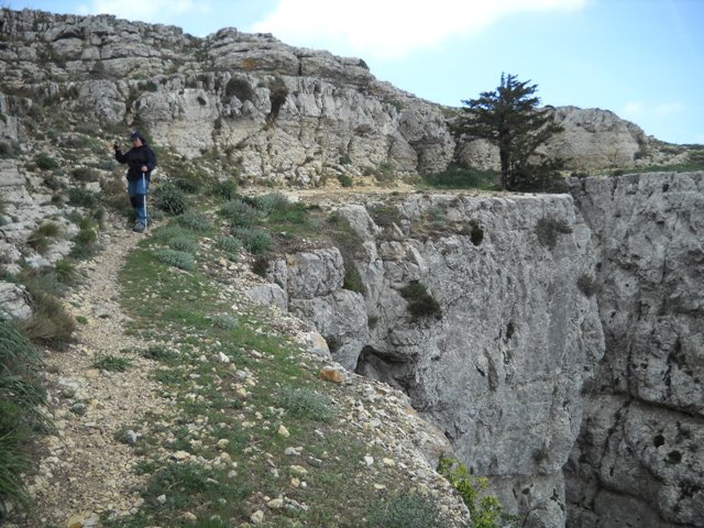 El camí de la canal no presenta cap dificultat tret del pendent. Un cop superada la canal, seguim cap a l´est. Som a la part cimera de la Mola però encara no al cim. Passem a tocar de la Bassot de la Mola, des d´on ja es veu el Castell de la Mola de Colldejou.