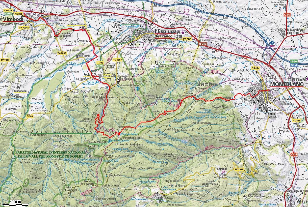 RESSENYA - MAPA - GOOGLE EARTH Sortida: estació de Montblanc Arrib.: estació de Vimbodí Distància:20,8 km Desnivells: +770 m / -630 m