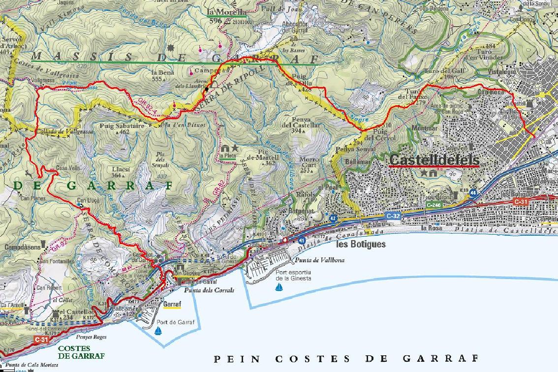 RESSENYA - MAPA - GOOGLE EARTH Sortida: estació de Castelldefels Arribada: estació del Garraf Distància: 20 km Desnivell: +660 m / -650 m