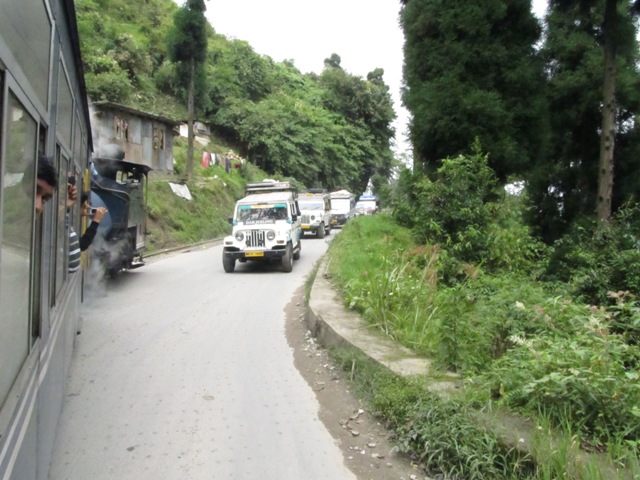 A Darjeeling s´hi pot arribar només de dues formes, per carretera o en tren, sent aquest últim el més singular. El Darjeeling Himalayan Train és una línia de tren construïda el 1881 pels britànics. La seva amplada de via és de només 2 peus (610mm) el que el converteix en un petit tren que sembla de joguina, d´aquí el seu nom. Surt de les planes índies prop de la ciutat de Siliguri (connectada a la xarxa de trens índies) i durant 86km puja pels contraforts de l´himàlaia fins a Darjeeling.