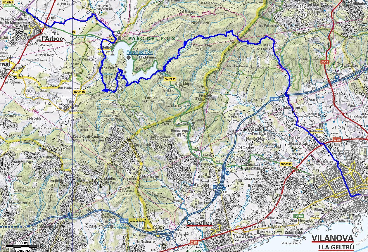 26. De Vilanova i la Geltrú a l’Arboç pel pantà de Foix WIKILOC - MAPA - GOOGLE EARTH Sort. Vilanova i la Geltrú Arribada: L´Arboç Distància: 23 km Desnivells: +485 m/-350 m Relacionats