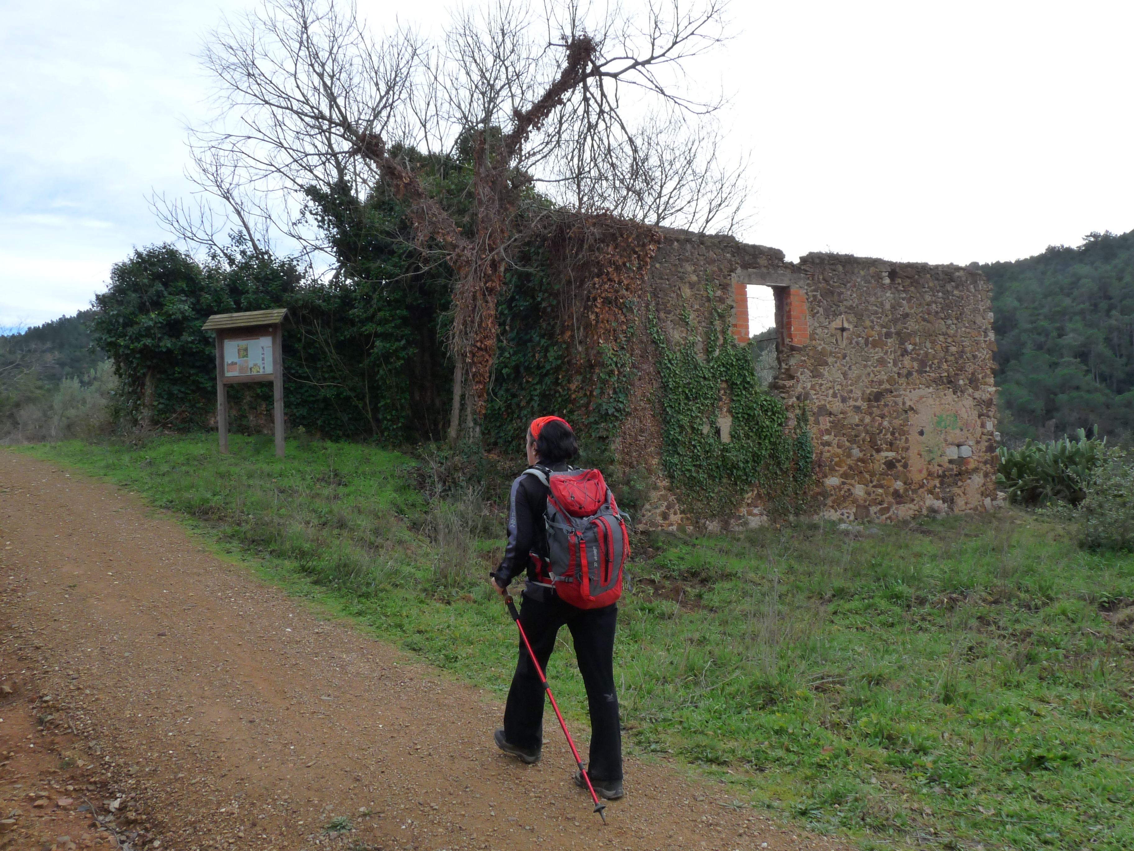 Continuem recte pel camí per on veníem deixant enrere una cruïlla fins a trobar una segona a 900m després de la Font. L’agafem en pujada tot seguint l’itinerari 1 marcat al pal indicador. El camí puja donant la volta a Can Ferriol. A l’alçada de les ruïnes de Can Gullana és on assolim la cota màxima de la sortida (188m).