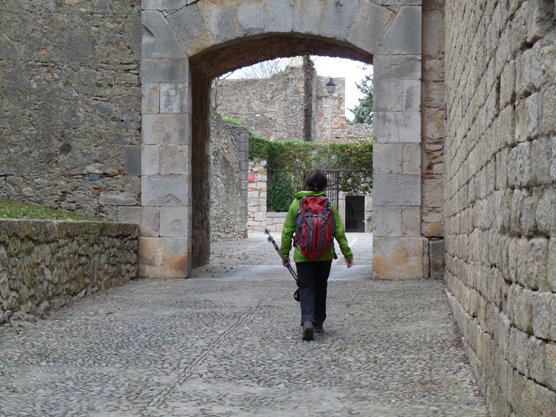 Travessem sota un pont peatonal que travessa les muralles, passem davant la Universitat de Girona i passada la Pl. de Sant Domènec girem a la dreta per agafar un carreró direcció est que passa per la Casa dels Alemanys.
