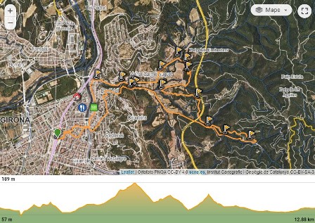 - Ruta ST108 Girona: pujada al Castell de Sant Miquel (100 cims) i al Santuari dels Àngels (1oo cims) 25,1km