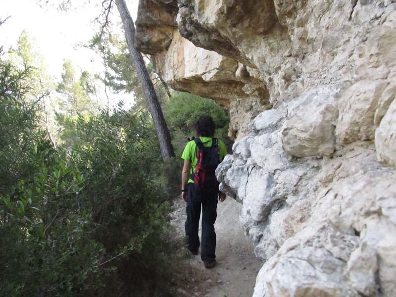 Des del balcó sobre la cinglera que és el final de la VF anem en direcció nord. Pugem un petit esglaó de pedra i tot seguit trobem un corriol. Si volem tornar a l’inici directament hem d´agafar-lo a la dreta.