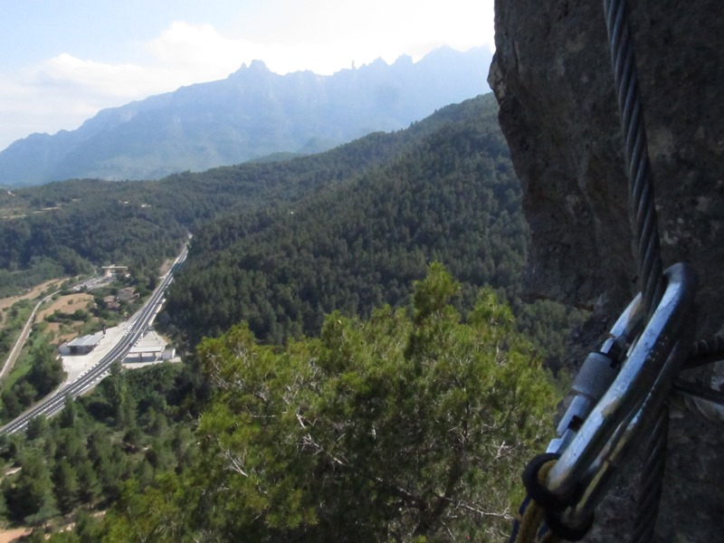 El primer tram de via ferrada és curta, de només 20 m. però amb un parell de desploms que ens faran suar de bon inici. Està ben equipada i no cal corda per aquest primer tram.