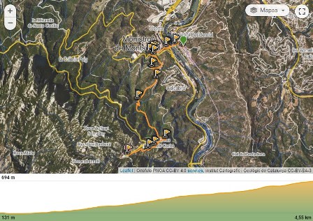 - Ruta ST77: De Monistrol (FGC) a Montserrat pel Camí de les Canals (GR-5) 4,7km (+570/-20)