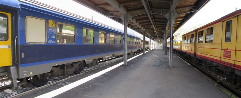 Després de fer a peu els 900m que hi ha de la població de Portè Pimorent, trobem que és molt menys perillós per la integritat física de l´excursionista caminar 150m per sobre una via que no fer-ho centenars de metres per una carretera sense voral. Hem triat la tercera opció per accedir a l´estació final.