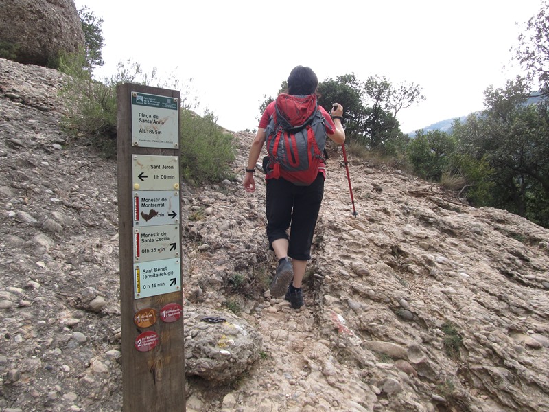 En aquest pla retrobem les marques blanques i grogues del PR C-19 que hem seguit una estona des de la Plaça de Santa Anna. Aquest sender de petit recorregut (anomenat Portal de Montserrat) fa tota una volta per la part sud del massís des de Monistrol, passant pel Santuari i Santa Cecilia en un recorregut total de 24km. Ara el tornarem a seguir durant 1,2km fins a l´Ermita de Santa Anna i la Plaça de Santa Anna.