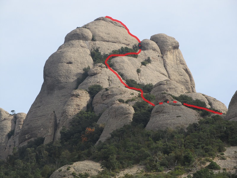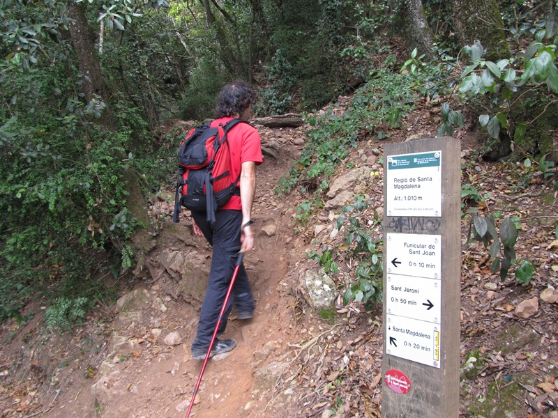 Som al camí Nou de Sant Jeroni, còmode camí que connecta l’estació Superior del Funicular de Sant Joan amb el Camí Antic de Sant Jeroni. El prenem a l’esquerra (SE). Passem el Mirador de la Serra de les Paparres i continuem sota les parets de la Gorra Frígia on sovint hi podem veure cordades d’escaladors que aprofiten les vies d’iniciació a l´escalada que hi ha instal·lades per començar la pràctica d’aquest esport.