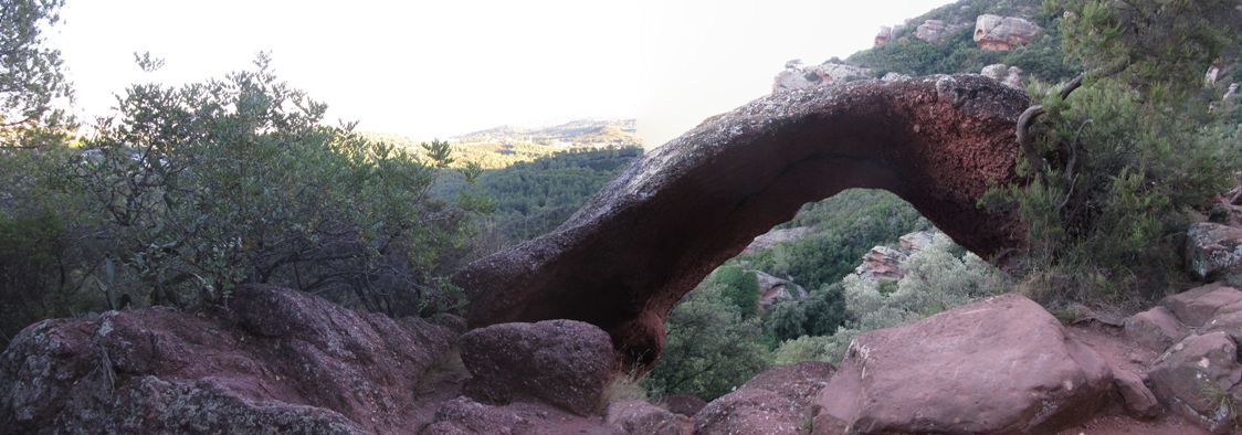 Formació geològica en arcada molt curiosa i fotogènica. Recorda, en miniatura, els grans arcs de l´Arcs NP dels Estats Units. Aquesta part oriental del massís del Garraf té una composició geològica formada per gresos i conglomerats vermells que contrasten amb la roca calcària de la resta del massís, fet que li confereix aquest color vermell característic d’aquesta part del Garraf.