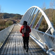 Seguim l´itinerari travessant un pont de vianants sobre el riu Ter construït per Santiago Calatrava. Fa 60m de llargària i està fet amb una estructura tubular, pintada de blanc. Es va inaugurar el 10 de maig de 1995.