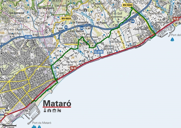 - Arribada: Estació de Sant Andreu de Llavaneres (Rodalies de Catalunya R1)