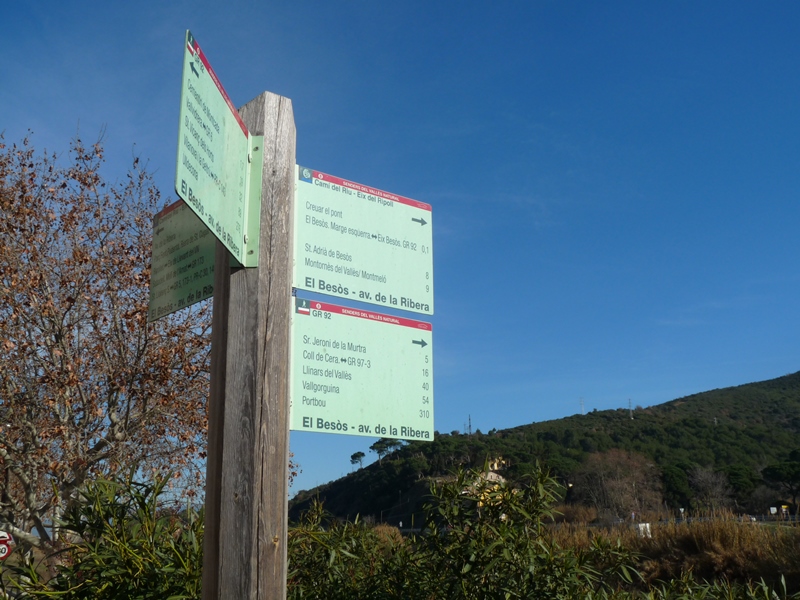 Sortim de l´estació de Montcada cap a l´esquerra per prendre el passeig de Colom que va paral·lel a les vies del tren. Creuem el pas a nivell i seguim les marques del GR-92, senyals que seguirem fins l´altre costat del riu Besòs, sobre la carretera de La Roca.