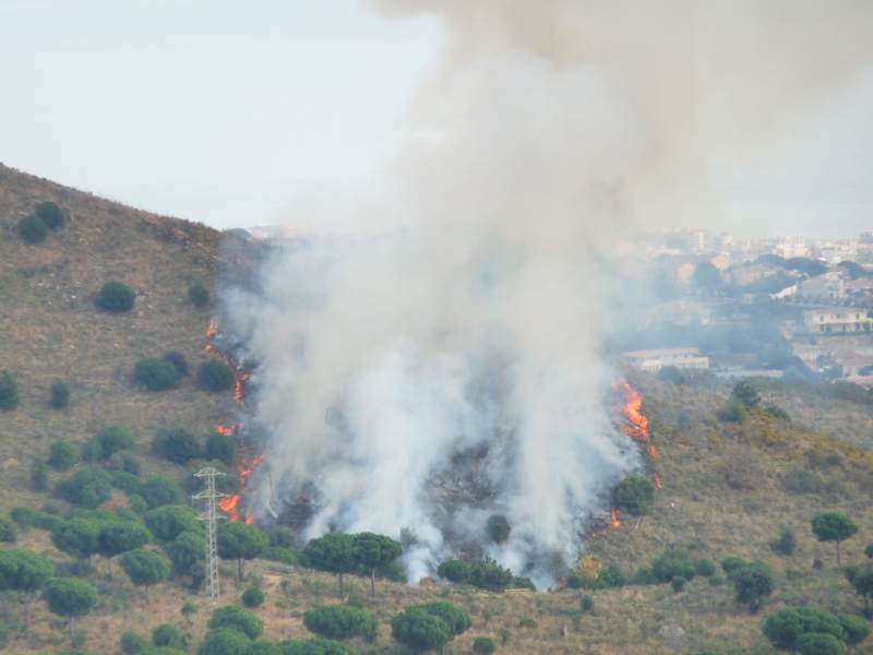 Refem el camí pujant fins a la cruïlla amb el GR-92. Seguim el sender cap a la dreta ( nord-est). Deixem l’asfalt i continuem en pujada per una pista amb àmplies vistes de les poblacions de Tiana i Badalona. Caminem entre matollars (brolles i estepars) silicícoles de terra baixa on predominen el bruc i la ginesta amb algun pi pinyer aïllat, una zona que pateix la pressió humana i on hi sovintegen els incendis forestals que no permeten que es regeneri la vegetació.