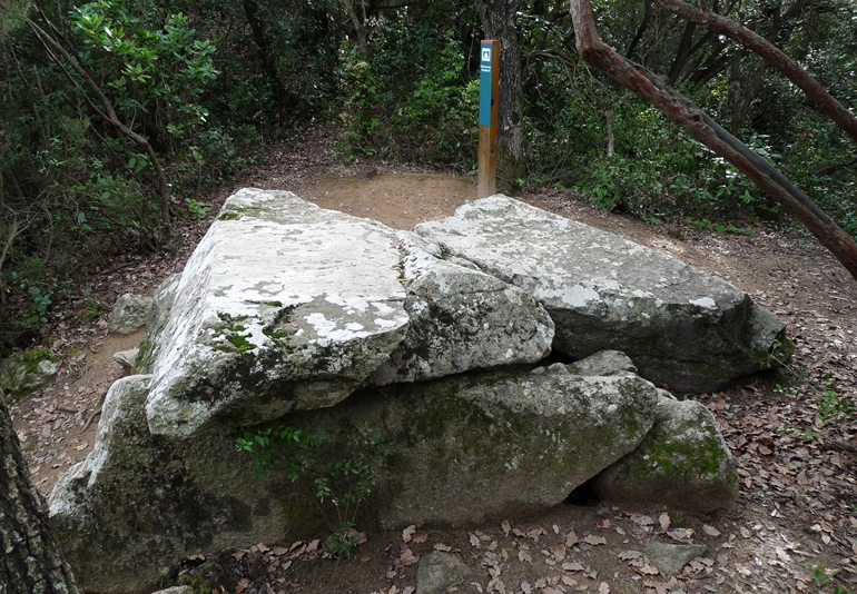 El dolmen es troba a pocs metres del coll de Castellruf seguint la pista per on veníem.