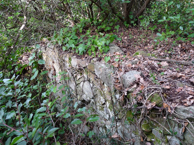 Bifurcació de camins on trobem el pal d´ informació vertical de “ Les Llicorelles”. Les llicorelles són roques metamòrfiques d´origen sedimentari formades per la compactació d´argiles, roques que trobem fàcilment en aquesta part de la Serralada de Marina. El terme sinònim de llicorella, pissarra (mot provinent del castellà i d´origen basc) no apareix per primer cop en un diccionari català fins al de Labèrnia de 1840.