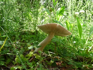 De la gran esplanada surt un corriol al seu extrem de ponent. L’inici del camí no és gaire clar, però el sender és fressat, abalisat amb les marques de pintura grogues que anem seguint tota l’estona. De nou caminem per un agradable senderó entre un magnífic i ombrívol bosc. A la cruïlla amb el Camí de Rocaguda seguim avall en direcció a Planoles pel Camí de la Sois fins prop del riu Rigat.