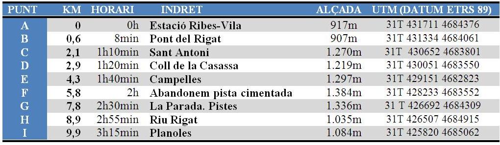 9,9 km 3h15min Estació de Planoles ( 1.084 m) (utm 31T 425820 4685062)