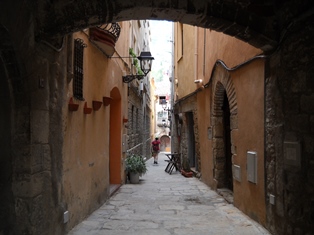 De seguida passem l’estret pas graonat del Pas dels Francesos que ens pocs minuts ens porta a la plaça de l’Abat Oliva per ponts i escalinates seguint el torrent de Santa Maria. Podem observar en alguns punts antics elements d’abastiment hidràulic del monestir, com antigues canalitzacions i la boca d’un pou de principis del s. XVII.