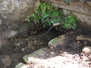 Font amb una bassa amb dues travesses que donen accés al broll. Creuem el torrent del Piteu gairebé sempre sec però ple de còdols i seguim la pujada vers la urbanització de La Calcina, amb una visió dilatada de les parets septentrionals de la muntanya, com els Ecos, les Roques del Salt de la Nina o el Bisbe.
