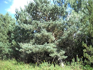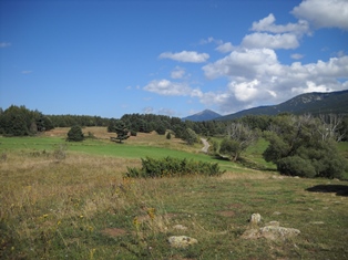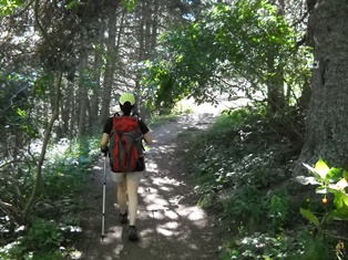 El camí va a tocar d’un bosc mixt de pi negre, bedolls i avellaners durant 10min (750m) quan el sender gira al nord-est per baixar per un camí herbós entre un bosc de pins.