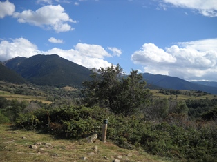 De nou a la cruïlla de camins anem cap a l’est seguint les marques del Camí de Sant Jaume i els senyals de pintura groga dels senders GRP Balcons de la Têt i GRP Tour de la Cerdagne.