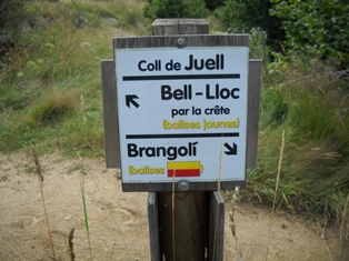 A llevant del Monestir baixa un corriol (pal indicador) que baixa dret cap a la carretera de Dorres al Bell-lloc. Nosaltres però, agafem la pista transitable per a vehicles que baixa cap a ponent. Després de 830m (12-14min) de sortir de Bell-lloc la pista fa una gran llaçada a l’esquerra, punt d’on surt un camí poc fressat que va a Brangolí. De la corba són 1300m (20min) més fins al trencall a Ur (compte, que el trencall no és gens clar).