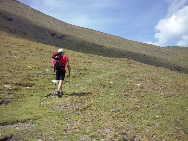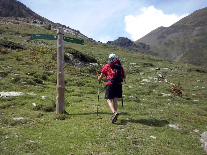 Prenem el camí direcció al Finestrelles (dreta, pal indicador). A partir d´ara pugem de valent per la coma de Finestrelles amunt. En tot moment seguim el camí ben fressat i marcat amb els senyals blancs i vermells del GRT-73. De mica en mica anem guanyant excel·lents vistes cap al pic de Finestrelles que tenim just a la nostra dreta segons pugem en llaçades.