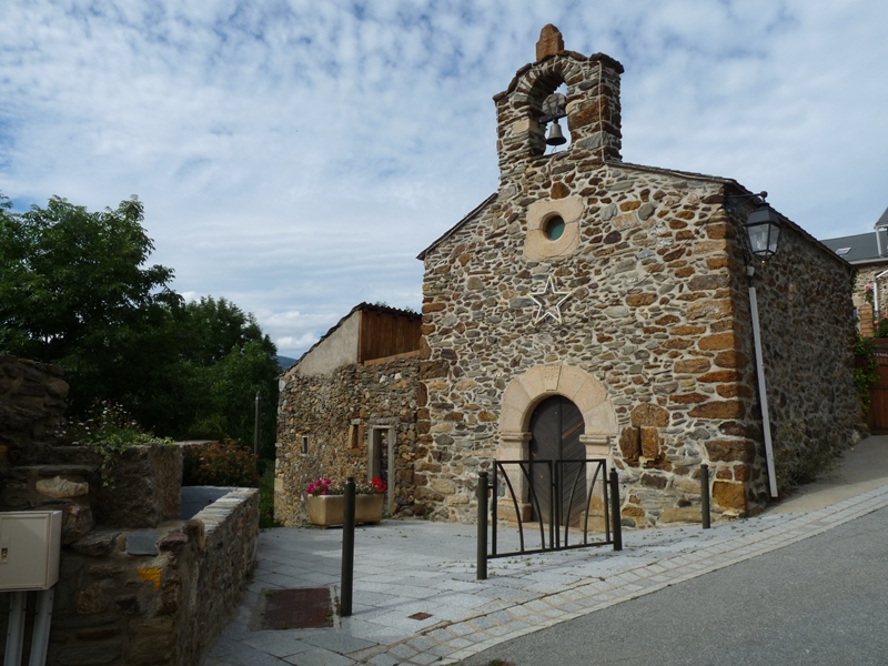 Uns metres més avall dels Banys trobem a mà esquerra un camí senyalitzat amb un pal indicador del Boucle des Amours Sauvages i del Sentier Rupestre. Hem d’agafar aquest camí, però val la pena apartar-se del recorregut uns metres i visitar abans de continuar l’església de Sant Fructuós de Llo, una ermita romànica documentada del s. X situada a l’entrada Llo.