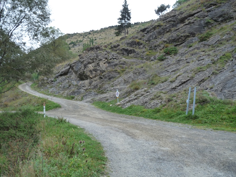 La pista de terra segueix pel marge esquerre del Segre fins al Pont des Oubliés. Uns metres abans del pont trobem a l’esquerra el trencall del Boucle des Maquisards, un sender circular amb origen a Llo.