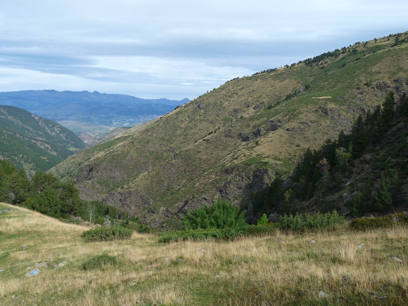 A l’esquerra tenim el bosc comunitari de Llo, un bosc públic que ocupa 9,7km2 i que culmina al cim arrodonit i emboscat de la Tossa d’Er (2.350m). Contrasta a la dreta la Serra dels Clots, carena que ens separa de la Vall d’Eina i totalment desforestada. Al fons de la vall podem veure dos turons, un d’ herbós i un l’altre de rocós, on hem de baixar per anar a trobar Els Collets. El refugi de La Culassa no és visible, tapat pels Collets.