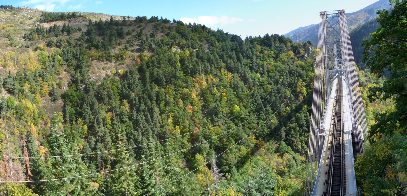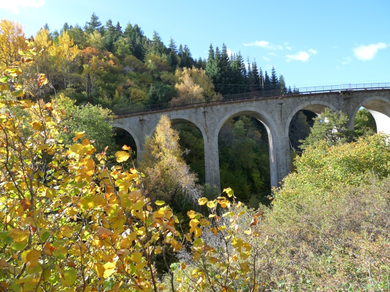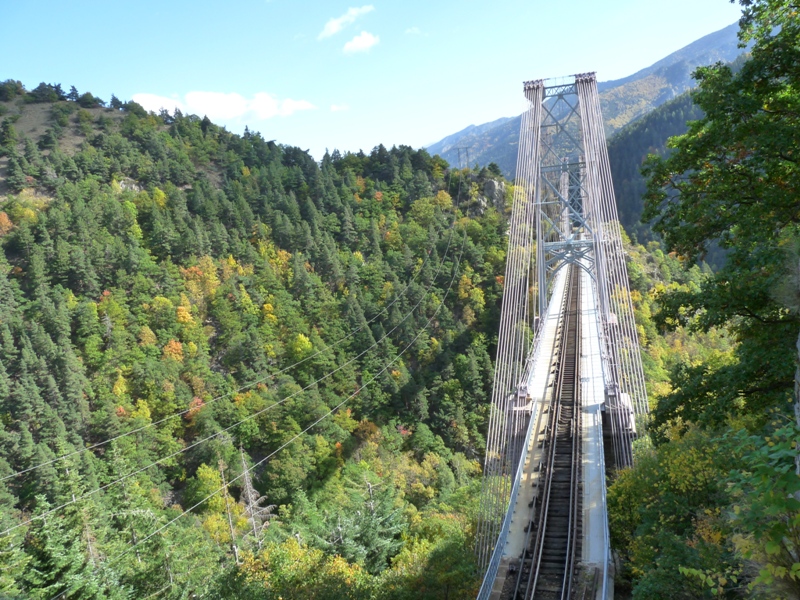 Compartirem ruta durant una estona amb el PR5 Les arbres du Haut-Conflent, un camí botànic per on anirem trobant plafons identificatius de les diferents espècies arbòries que trobem pel camí. Durant la caminada també visitarem patrimoni arquitectònic ferroviari. Així podrem veure tres diferents ponts monumentals de la línia del Tren Groc. D’especial interès és el pont de Gisclard, únic pont penjat ferroviari de França. El pont porta el nom de l’enginyer que el va dissenyar i que va morir en un accident amb cinc persones més durant unes proves de càrrega. A mitja travessa passarem pels banys de Sant Tomàs, uns banys d’aigües termals on podrem fer una remullada (6€).