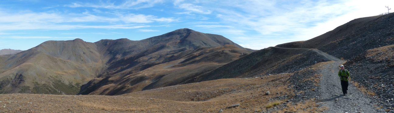 A partir d’ara seguirem aquesta pista fins el Pas dels Lladres. Davant tenim la Tossa del Pas dels Lladres, cim de 2.661m dominat per un remuntador de les pistes d’esquí d’Err-Puigmal. Tenim l’opció de pujar-hi, tot i que no hi ha camí evident i el sender abalisat va per la pista. Envoltem la Tossa pel nord, creuem una pista d’esquí, i baixem fins l’ampli coll del Pas dels Lladres.