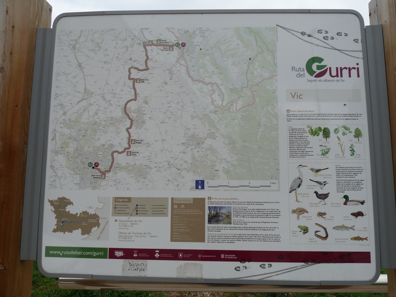 En tot moment la caminada segueix La Ruta del Ter. Ara bé, des de la ciutat de Vic i fins a Roda de Ter seguirem la Ruta del Gurri, una ruta afluent que ressegueix el riu Gurri des de Vic fins a Roda de Ter. La ruta està senyalitzada amb els senyals propis de La Ruta del Ter. En alguns punts trobarem també plafons informatius sobre les espècies vegetals típiques dels boscos de ribera.