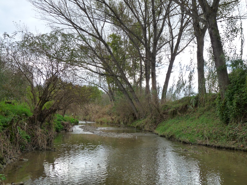 El camí segueix per la riba esquerra pel meandre de Gelabert, finca de 10ha propietat de l’Ajuntament de Manlleu restaurada recentment amb la plantació d’espècies de ribera autòctones com roures, verns, freixes i salzes.