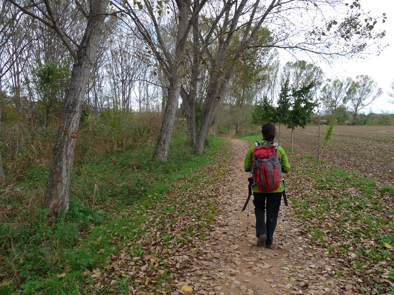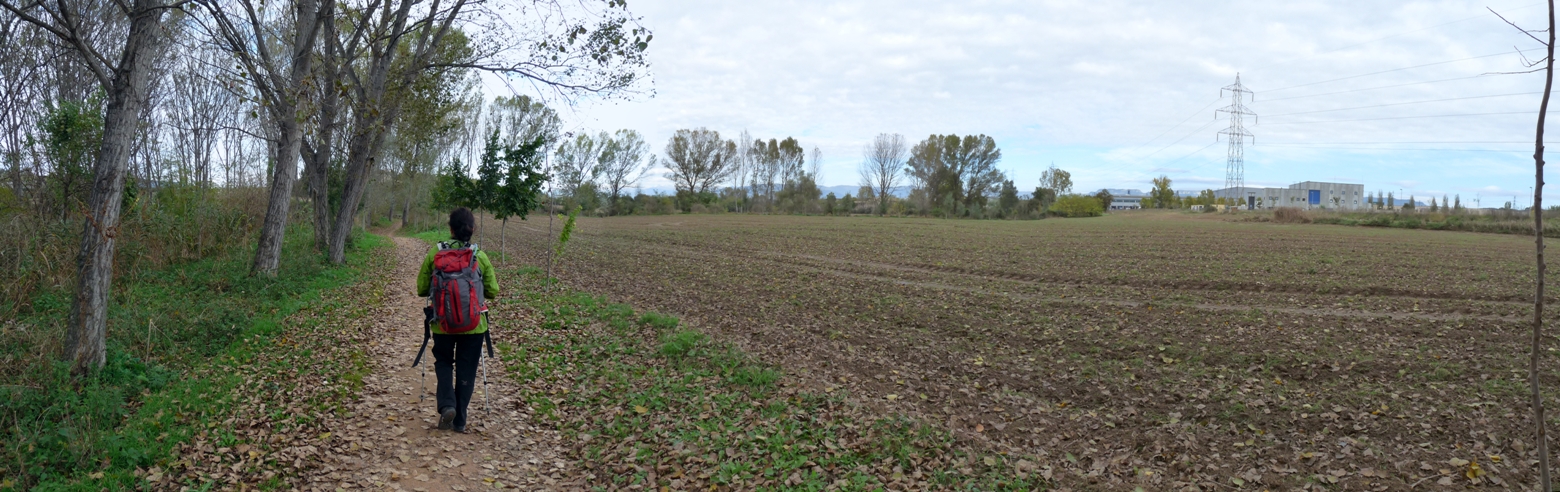 Seguim pel camí asfaltat amb la devesa del Pujolar (una illa situada entre el Gurri i el Ter) estenent-se amb pollancredes plantades per a l’aprofitament de la seva fusta.