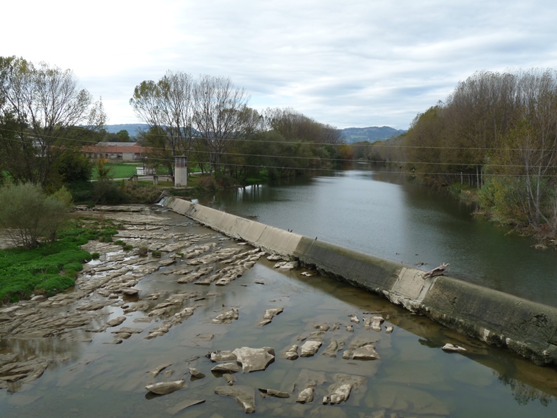 Des d’aquest marge de riu veiem completa la gran resclosa de Malars, de 3m d’altura, de construcció recta fins prop de la Colònia on es corba i on es troben les comportes.
