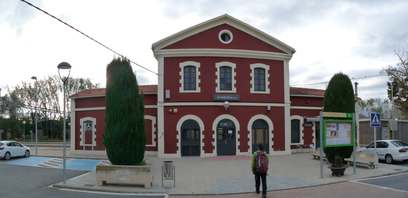 Arribada: Estació de Manlleu, línia R3 de Rodalies de Catalunya. Es troba també a la part oest de la ciutat. L’estació es va inaugurar l’any 1879 en entrar en servei el tram de Vic a Torelló.