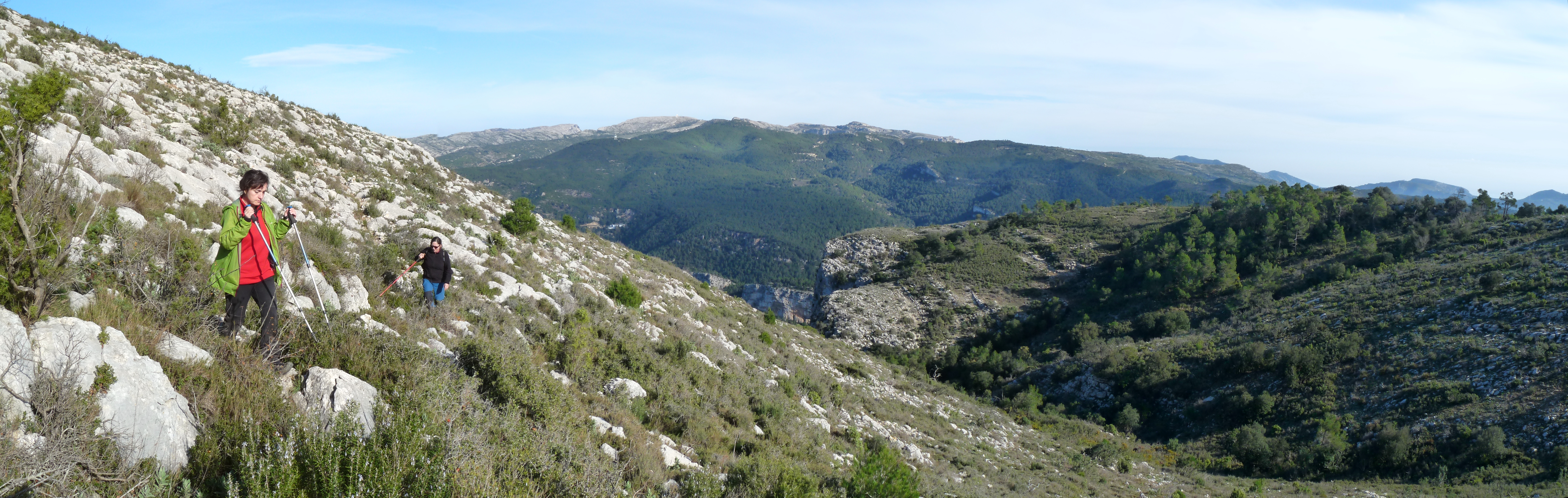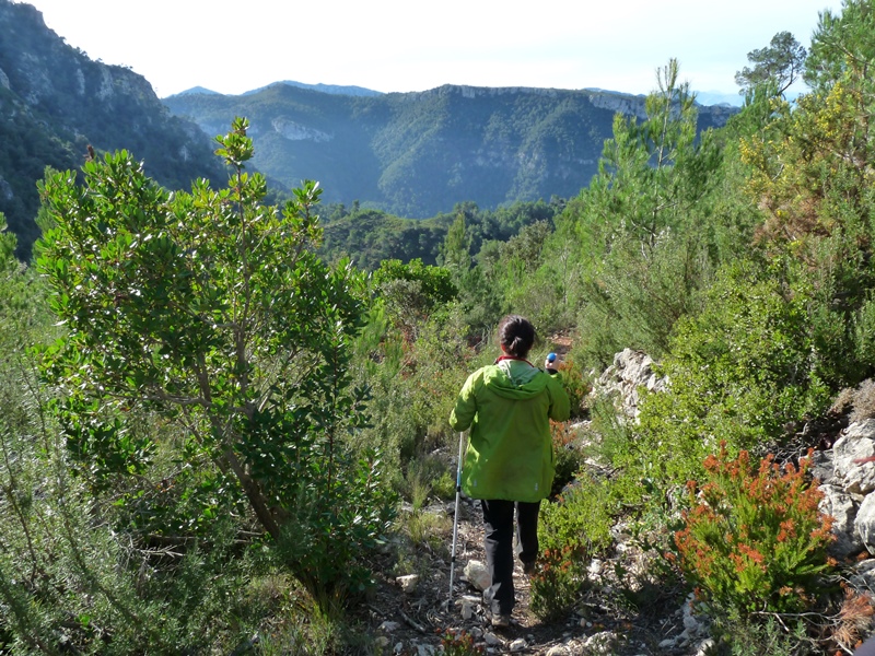 Situats de nou al coll seguim vers el sud pel vessant oriental, suau en comparació als cingles que cauen per ponent. Anem entre una garriga amb algun pi aïllat fins al cim del Montalt Sud (vèrtex).