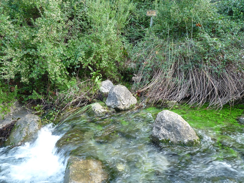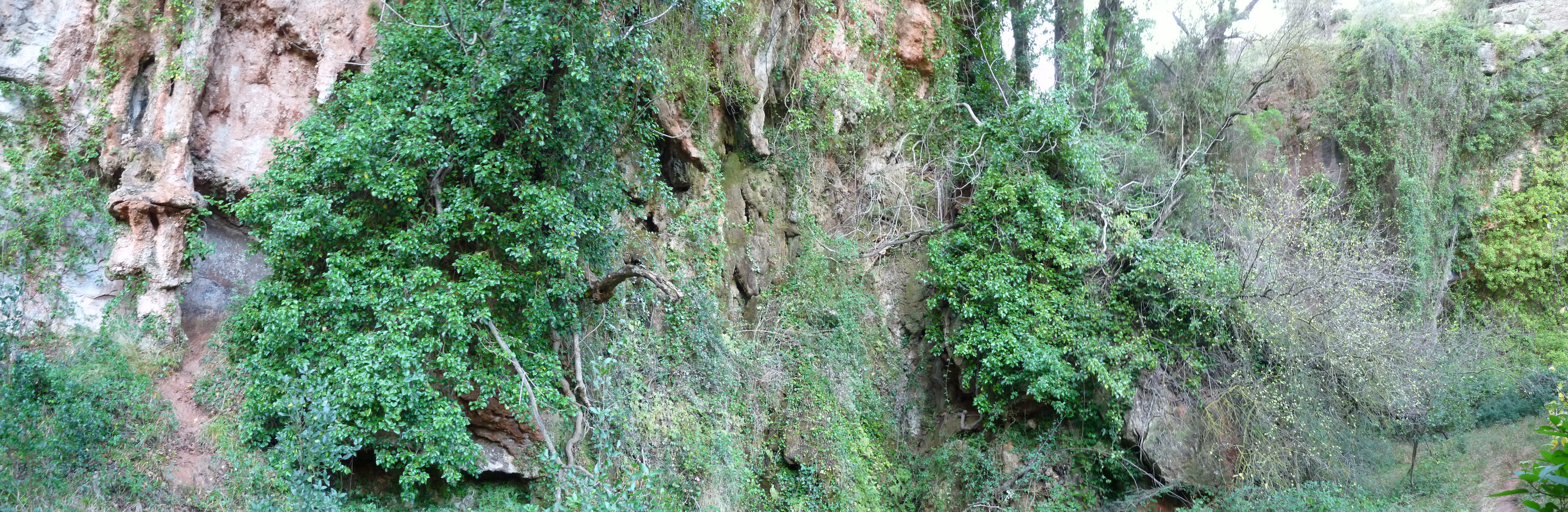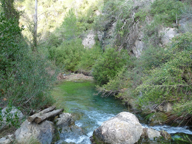 Bonic racó ple d’encant on l’aigua que baixa del torrent del Collet ha creat formes capricioses als cingles calcaris que envolten l’indret. El sender segueix enlairat sobre el barranc de Vall, arribant a uns camps d’oliveres poc abans de desembocar de nou al Camí de la Vall.