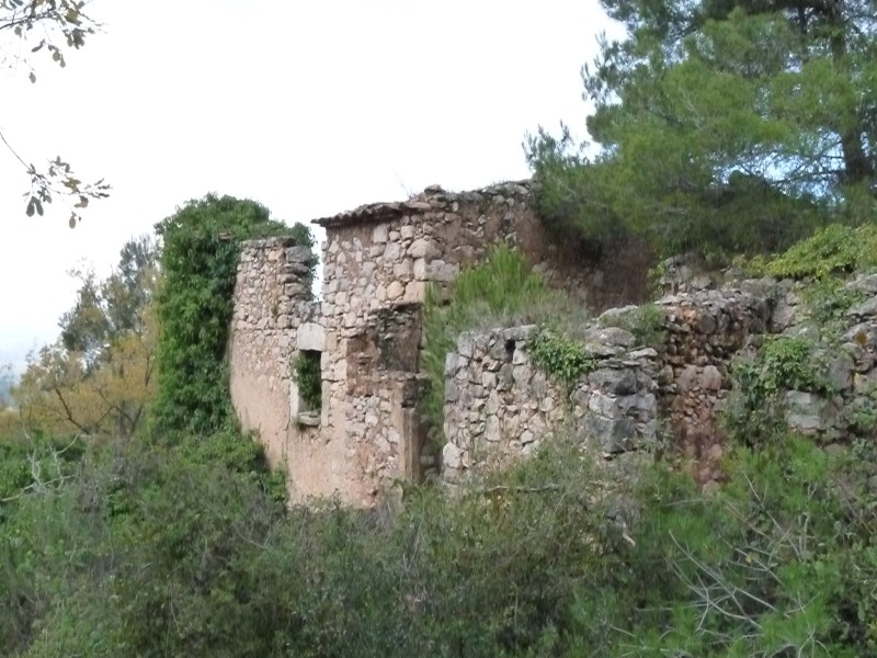 De nou a la font baixem pel corriol que va per un alzinar humit i força interessant seguint en direcció a Prenafeta segons ens marca un pal indicador de la Ruta del Císter. De seguida trobem les restes de l’antic poble de Prenafeta, ara abandonat. El poble va quedar totalment despoblat al s. XVIII quan els habitants van passar a habitar el poble actual, 2km avall, i cap a on ens dirigirem tot seguit.