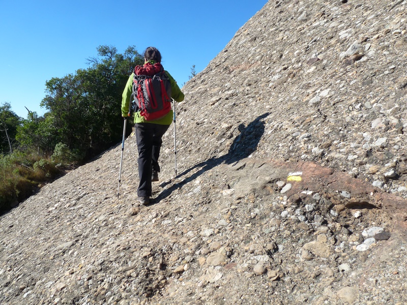Situats de nou a la bifurcació d’accés al Portell, deixem definitivament les marques blanques i grogues del PR C-78 per emprendre la curta però dura pujada fins al Portell del Migdia.