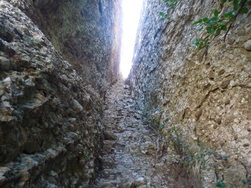 Més amunt passem per una estreta escletxa esglaonada, el Pas dels Francesos, punt on una petita agulla gairebé tanca el camí. L´indret està relacionat amb una llegenda sobre l´invasió francesa.