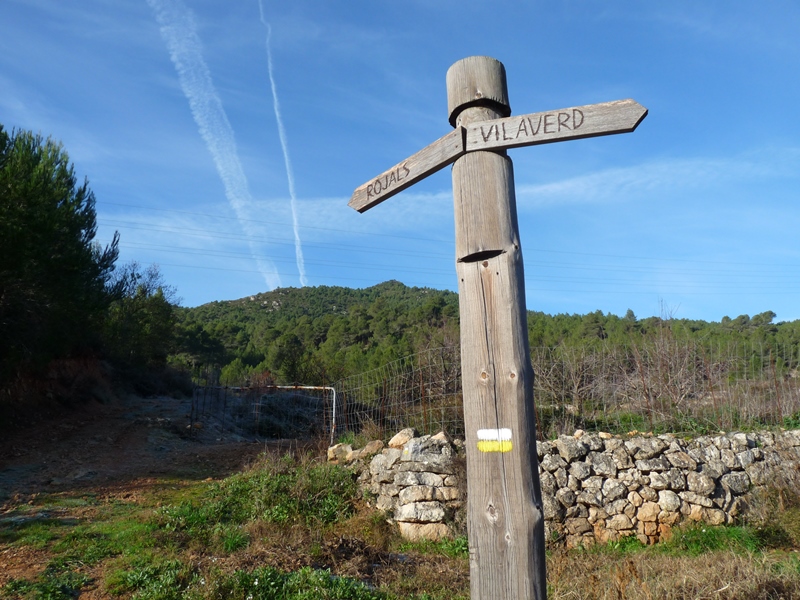 Un cop a la carretera de Montblanc a Rojals la seguim a l’esquerra amb compte durant 600 m fins que entrem a Rojals.