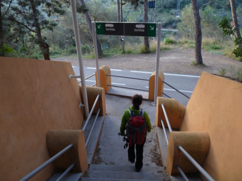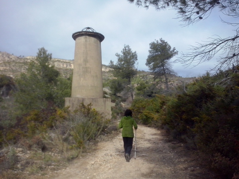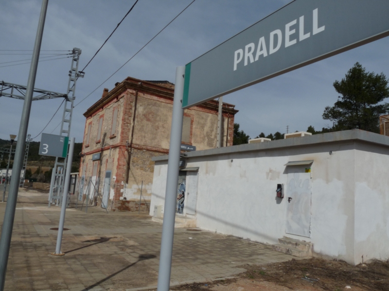 Desfem el camí de pujada per anar ara sí en direcció a l’estació del Pradell. Un cop hem passat el trencall per on hem accedit al barranc, passem poc després pel pou de ventilació 1, de 44m de fondària. El camí creua el torrent, encara amb la llera cimentada, i deixa un camí a la dreta que va al poble del Pradell a través del Camí dels Ràfols.